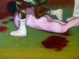 While doing some gallery research I came a cross a piece which obviously looked rather familiar. Since I had done a similar painting not too long ago for [peripheral/interface], I noticed it right away. Artist Susan Crile put together an entire series called "Abu Graib: Abuse of Power."